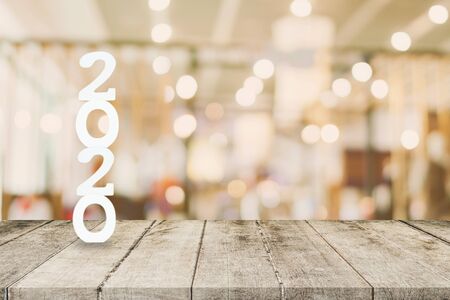 2020 New Year concept - wooden word 2020 on table and blur light background