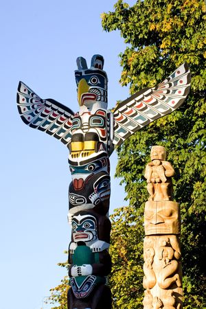 Indian totem poles in Stanley park in Vancouver, Canada.