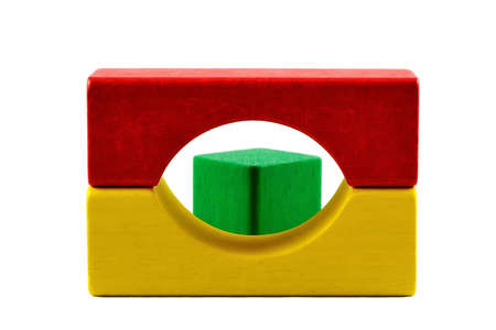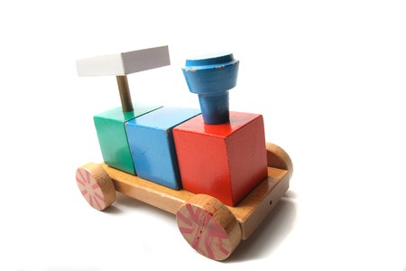 Wood block toy on isolated white background.