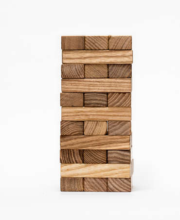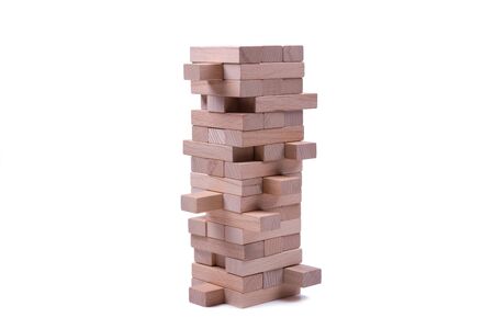Wooden block tower game isolated on white background