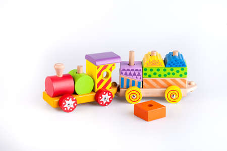 Colorful Colorful wooden toy train isolated on white background