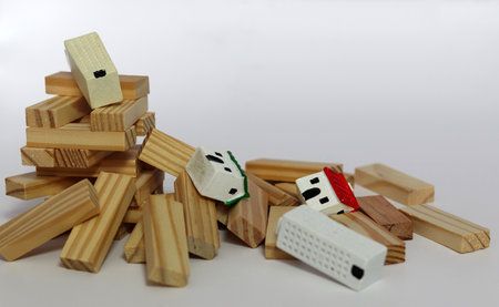 Houses made with wooden blocks in a row, domino effect