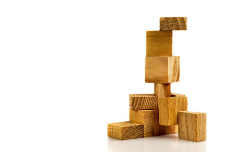 Wooden building blocks isolated on white background.