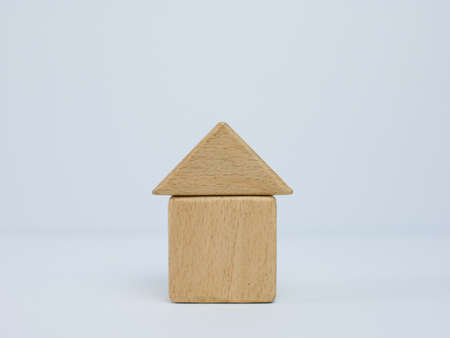 wooden block house isolated on white background for investment concept