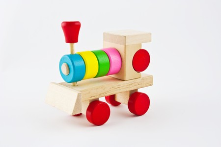Wooden toy train on white background. Transportation concept