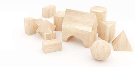 3D rendering of wooden toy blocks.