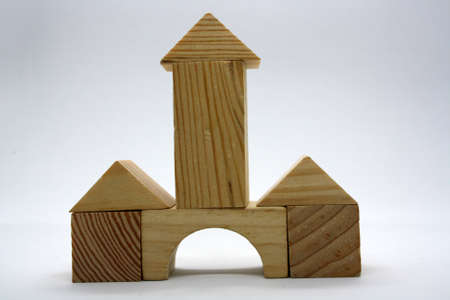 House of wooden blocks on a white background