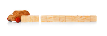 Cubes with space for text and wooden toy car on white background