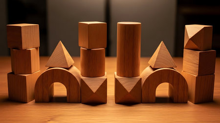 Collection of wooden blocks arranged on table