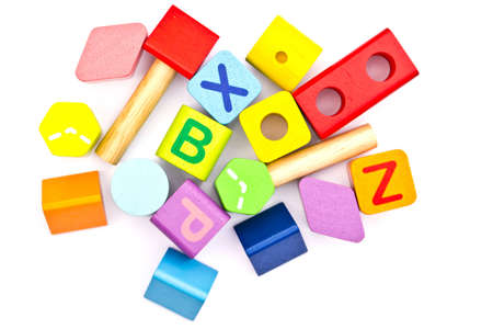 wooden toy blocks isolated on white background