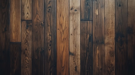 Wooden background with dark brown wood planks. Wooden texture for design and wallpaper, top view. The concept of a rustic wooden wall, a natural material. Flat lay. Background, copy space. Stock photo with 2/3 space for text. --ar 7:3 --v 6.1 Job ID: 1c8d0794-c9ed-4368-b180-3f68eea30726