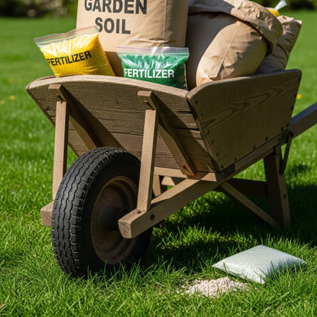 A vintage wheelbarrow overflowing with bags of nutrientrich soil