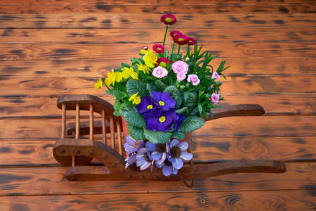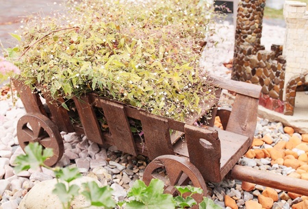 Decorative garden decoration, cart with the small the flowers