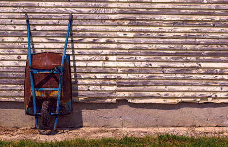 Peasant weelbarrow standing in front of a wall