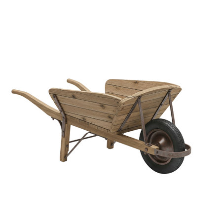 Garden ornaments: a wooden wheelbarrow.