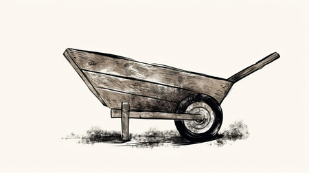 this intricately designed wheelbarrow icon, rendered in a beautiful ink etching style, stands out against a crisp white background, evoking a sense of rustic charm and gardening nostalgia, perfect for gardening enthusiasts and outdoor enthusiasts alike. ai generated