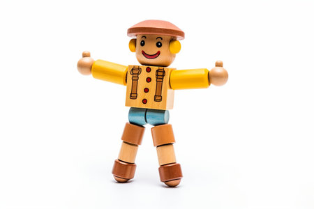 wooden dummy jumping have feeling happiness