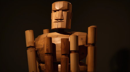 a wooden dummy with marks of repeated strikes, created with generative ai