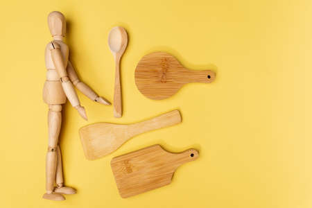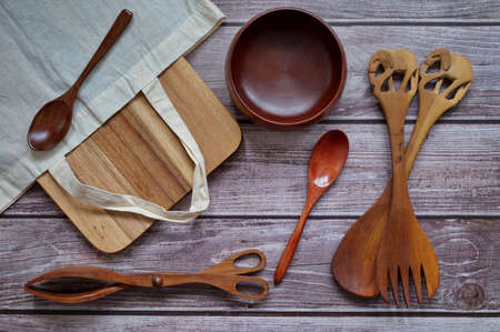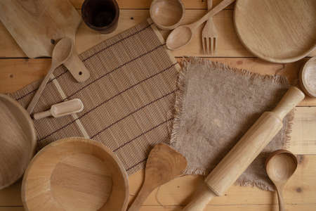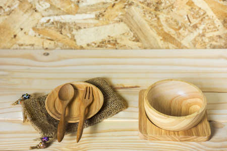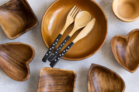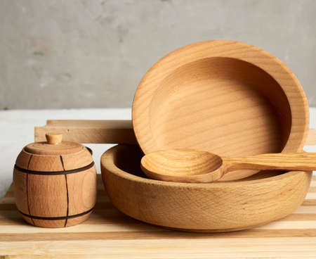 wooden utensils. natural wood kitchen utensils - plates and supplies.