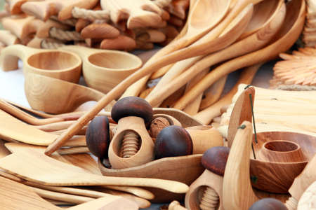Wooden kitchenware and utensils sold on Easter market in Vilnius. Lithuanian capital's annual traditional crafts fair is held every March on Old Town streets