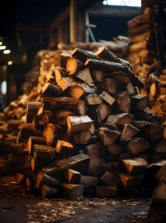 Stack of chopped wood establishment. Creative resource, AI Generated