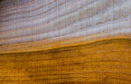 Fragment of roughly handled pine plank covered with mordant close-up, texture, background