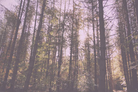Woodland scene with autumn leaves in yellow and brown Vintage Retro Filter.