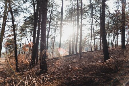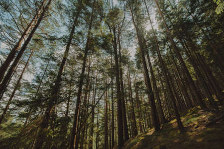 A beautiful shot of trees grown densely in the forest captured in the evening - perfect for wallpaper