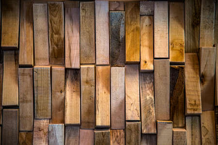 Decoration wooden blocks wall close up. Close up block of the wood wall backgrounds, abstract textures.