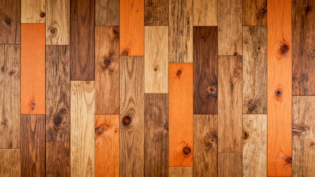 Seamless wood panels stretch across the frame, with a consistent pattern and warm wooden tones. This image captures the essence of structured natural beauty. AI generation