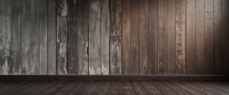 AI Generated. Old Wooden Wall and Dark Brown Wooden Floor Background Image