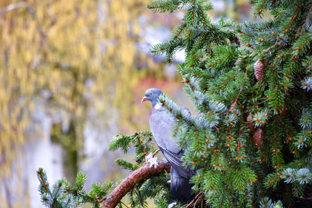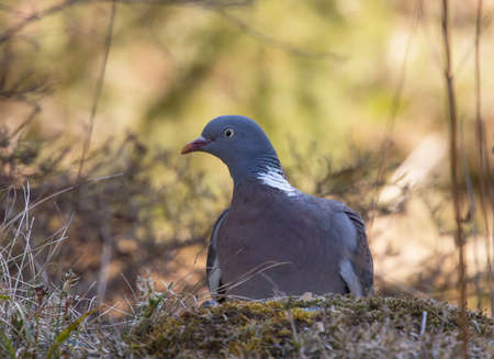 The common wood pigeon or common woodpigeon (Columba palumbus) in the forest