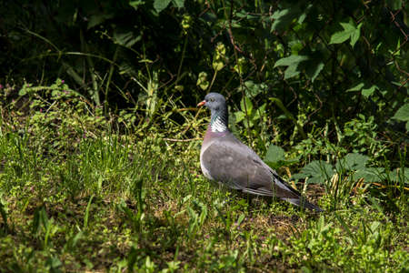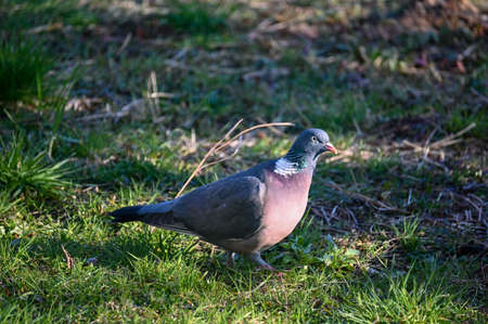 A wood pigeon ( Columba palumbus ) on a green meadow