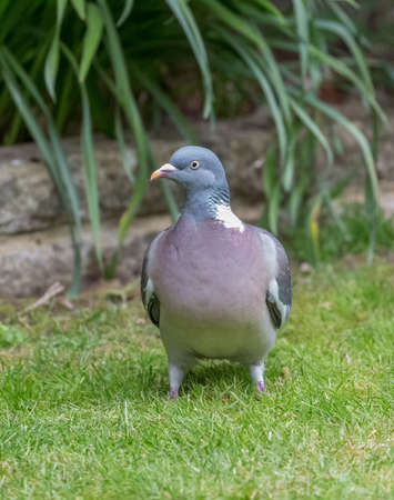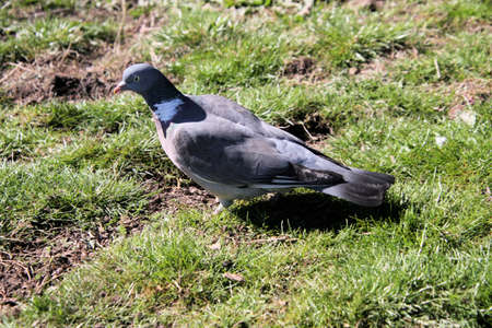 Common Wood Pigeon, Columba palumbus, single bird on grass, Warwickshire