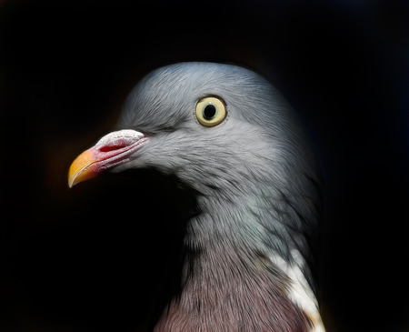 Close up portrait of the common wood pigeon (Columba palumbus)