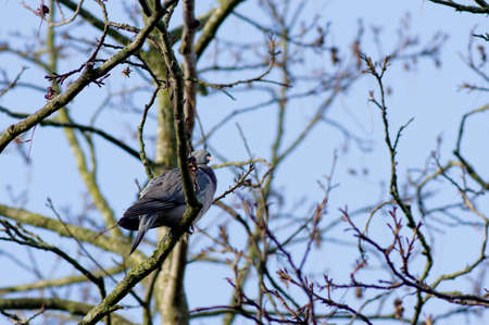 Columba palumbus. It occurs almost all over Europe. Wild nature of Czech. Spring nature. From bird life. Free nature. Czech Republic. Bird on the tree.