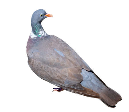 A high-quality image of a pigeon isolated against a clean white background, capturing intricately feather details and vivid textures. Perfect for creative designs, educational materials, or