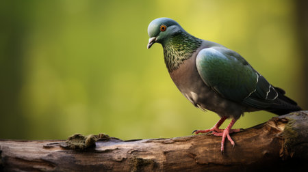 a full body portrait of an award-winning wildlife photography of a pigeon captured with an ultra-wide shot using a canon 300mm f/2.8 lens. the hyperrealistic image showcases the intricate details of the taxidermy pigeon, with a focus on its eye and super detailed feathers. the studio lighting enhances the realism of the photograph, which is of 300dpi cmyk quality and 8k resolution. ai generated