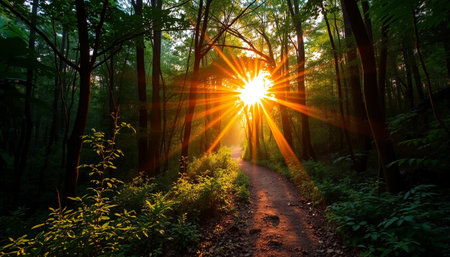 Warm rays through forest trail