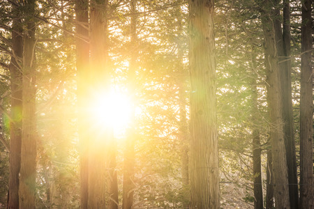 Pine trees in the forest with sun