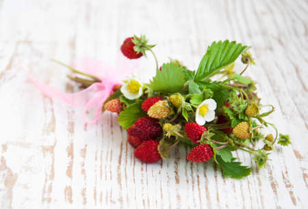 wild strawberries on wooden surface