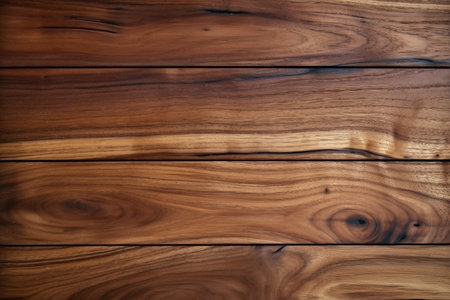 Rich walnut wood texture with horizontal wood grain, subtle natural imperfections generative ai