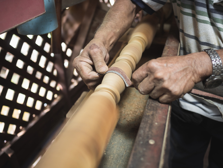the hands of the craftsmen carved wooden product