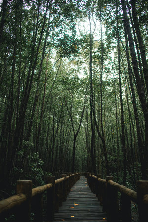 Wooden walk way in mangrove forest, Feel the nature, fresh and relax