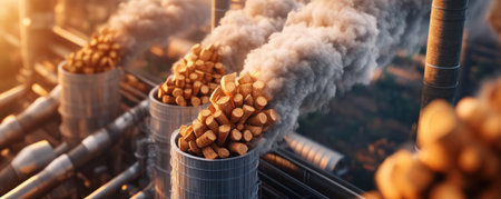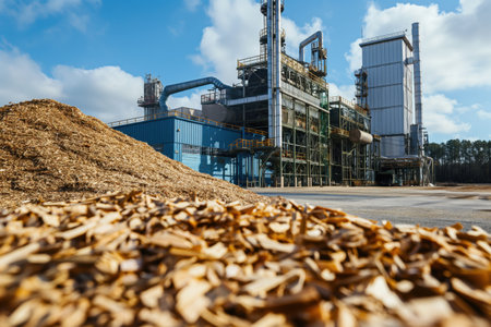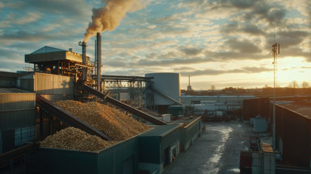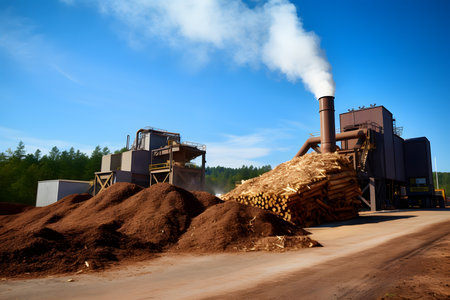 This image portrays a biomass plant utilizing smart fuel systems to cut emissions It highlights a sustainable energy solution with advanced emissions control and eco-friendly fuel tech The plant embodies innovative, carbon-reducing industrial processes using renewable technologies for clean power, showcasing a commitment to a greener environment and energy independence AI Generative