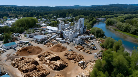 Impressive Aerial View of a Sawmill. Generative AI