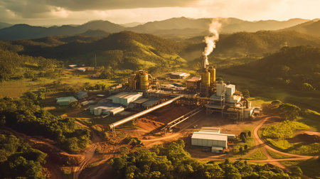 photos of the gold mine processing facility from an elevated perspective. GENERATE AI