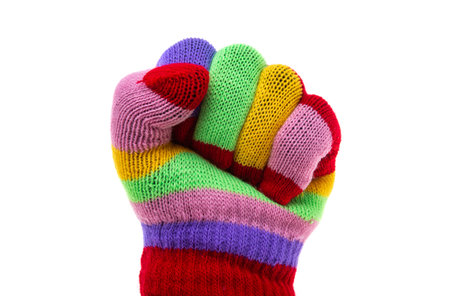 Fashionable Brown Winter Gloves on Colorful Geometric Background
