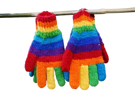 Womanly pink gloves and colorful shawl for autumn or winter, warm clothing concept