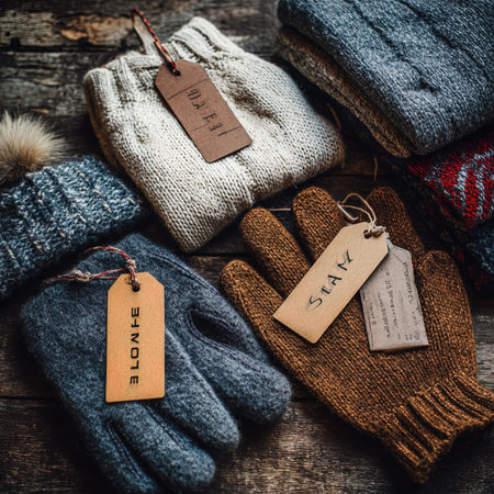 Cozy Beige Gloves on Plaid Scarf Against Bright Orange Background